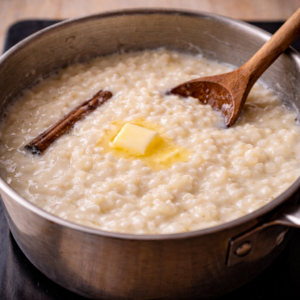 - Termina y ajusta textura: Retira canela y piel de limón. Si usas mantequilla, añádela ahora y mezcla hasta que se funda.– Si lo quieres más líquido, apaga el fuego cuando aún esté algo suelto: espesa al enfriar.– Si lo prefieres más denso, deja 3–5 minutos extra a fuego muy bajo.20 gr. de mantequilla (opcional, para extra cremosidad)